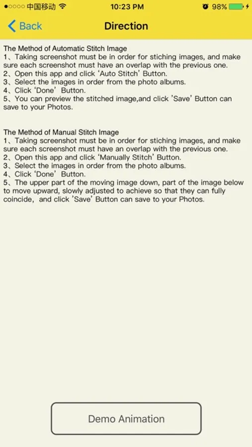 The APP is an amazing image stitch tool,which can automatically or manually stitch screen shots with super-fast speed .This app can make continuous screen shots for long pages,and then stitch them together as a long screen picture.Please communicate with me,if you have any suggestions or comments.