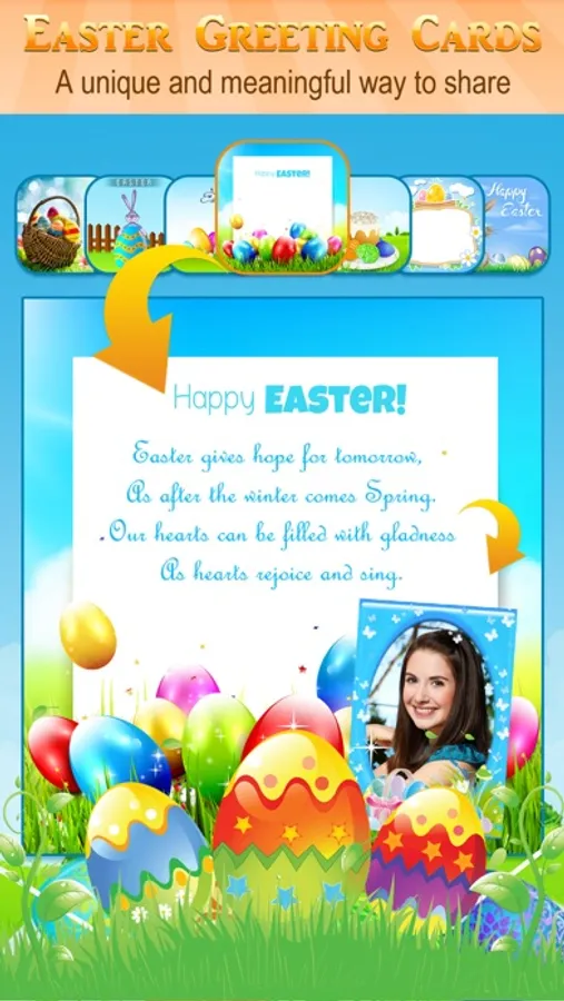 Happy Easter Greeting Card.s Maker has over 50 card templates, 80 stickers and 60 quotes for every occasion which can be used to send love and cheer this festive season.