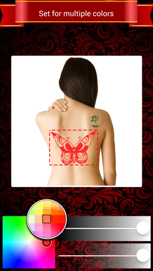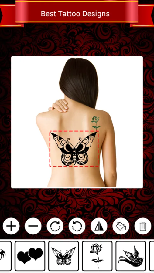 - Browse our many tattoos and place them anywhere on your photos, you control the size, rotation, color , flip and placement of the tattoo