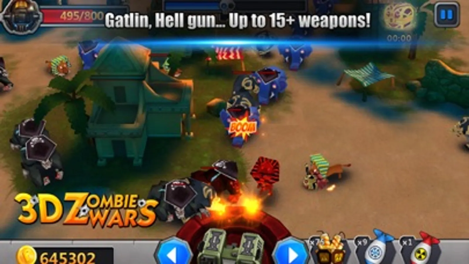 * Gatlin, Laser gun, Hell gun... Up to 15+ weapons to select!
