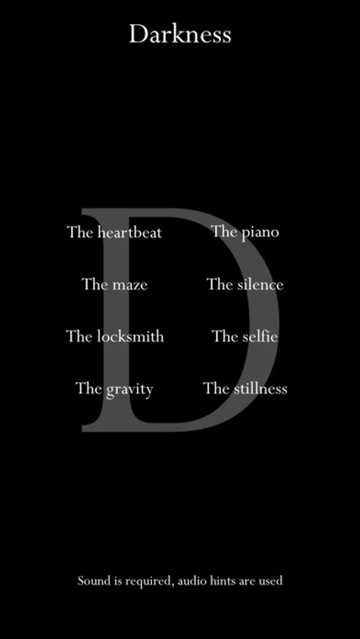 Darkness. is a puzzle game where you have to solve eight puzzles, the problem is you can't see them.