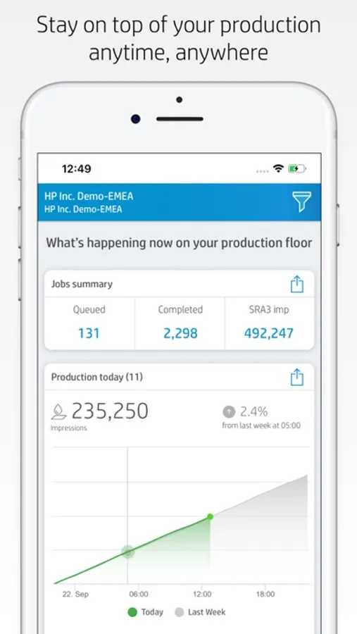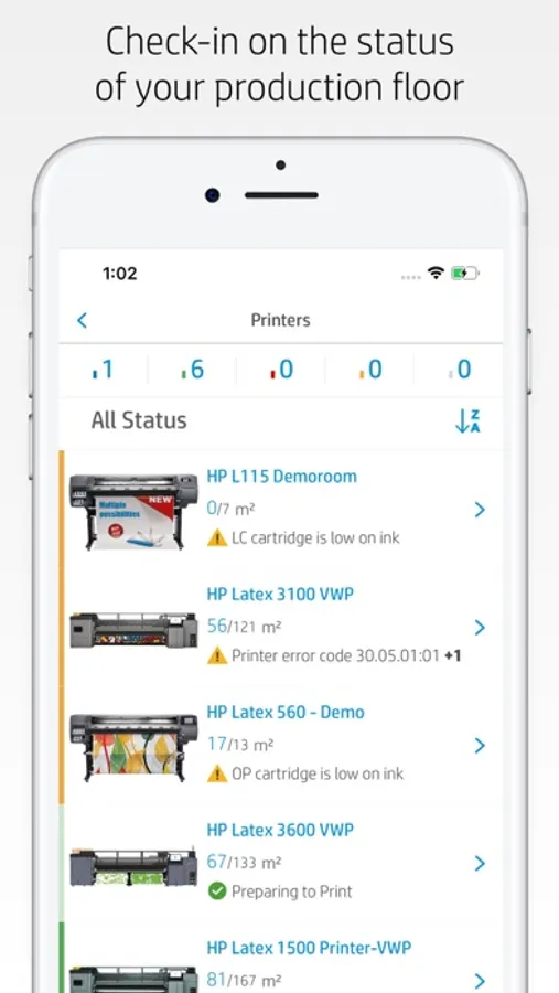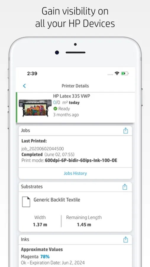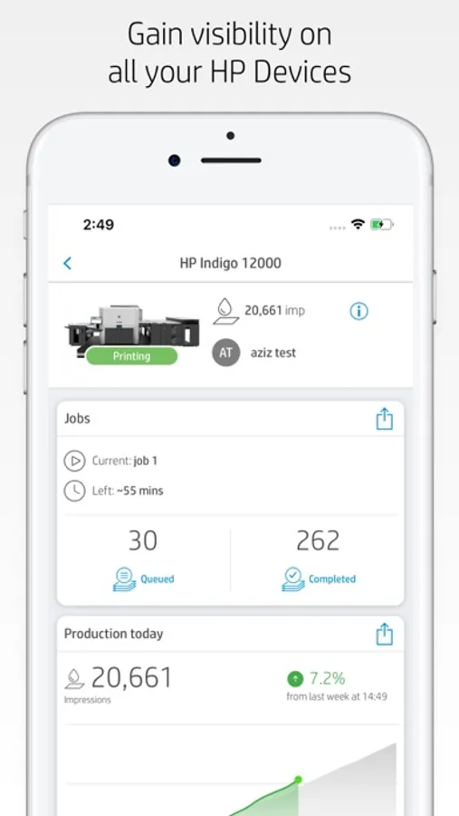 But this isn’t just about getting a snapshot of what’s going on in the moment. The HP PrintOS Mobile app provides accurate historical data and production trends, a view into your fleet’s current status, and insights into what you can do to optimize its performance moving forward. Tap into the advantages: