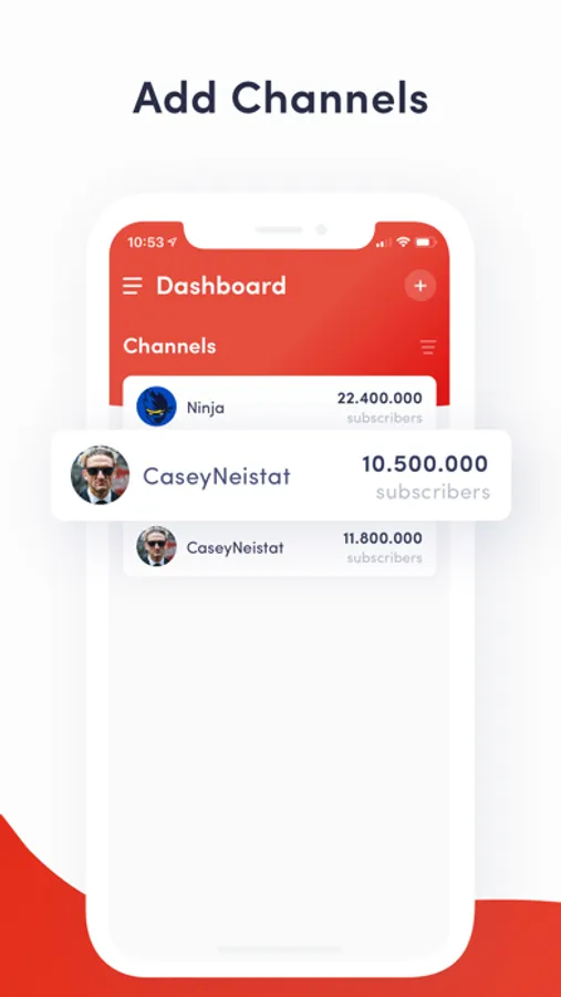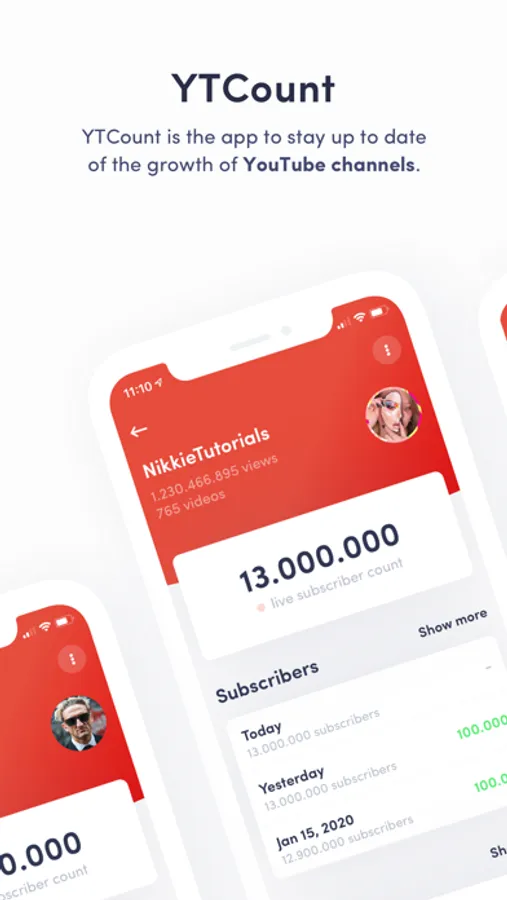 Our app tracks the number of subscriptions to Youtube channels and informs you in real time. The best thing about YTCount – Youtube Subscriber Tracker is that you can keep track of more than 1 channel at once. Our app will save you a lot of time and energy because you don’t have to log in to your account a couple of times in a day just to see your progress. YTCount is also FREE, so download our app and try it now!