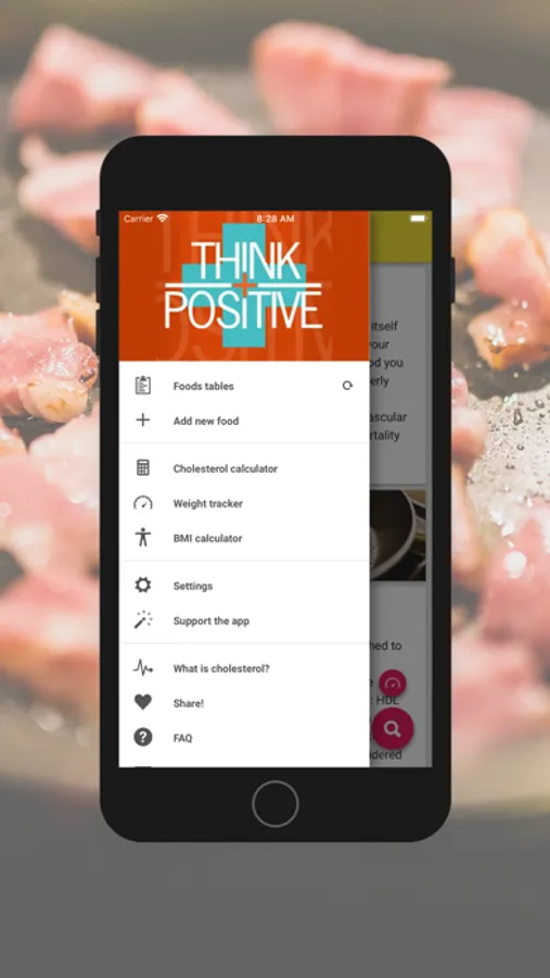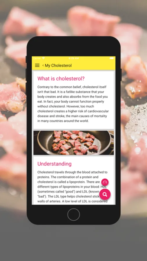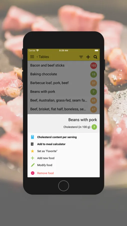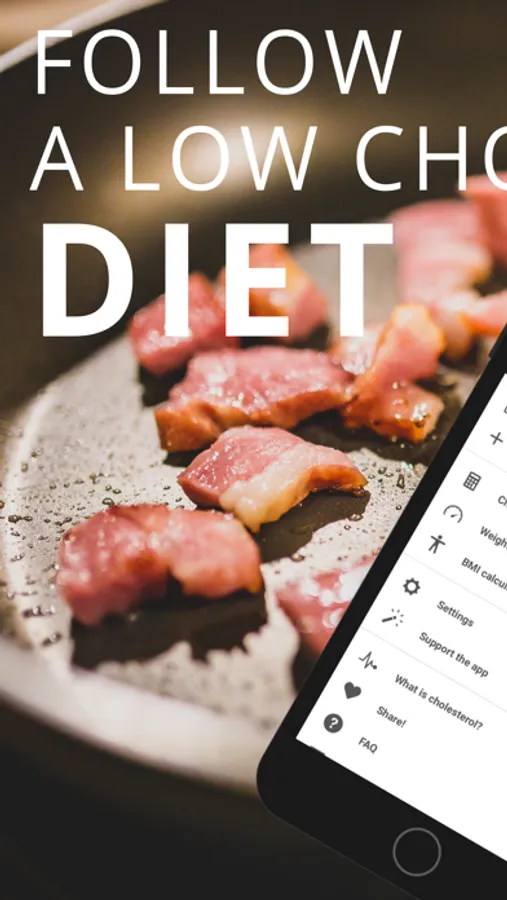 There are several factors that may cause high cholesterol levels: diets that are high in saturated or trans fats and salt, being overweight or obese, smoking, not enough physical activity, inherited (genetic) tendencies, and old age. Eating a heart-friendly diet is critical to keeping cholesterol levels under control. To assist you in your diet, this app contains a table of cholesterol content. In our other app you can find a table of the glycemic index of foods. Both apps are the good way to keep control over what you eat.