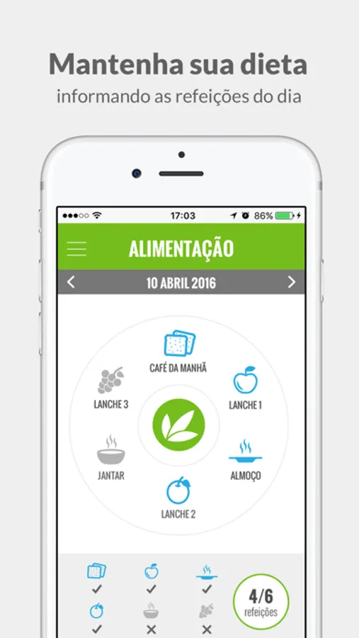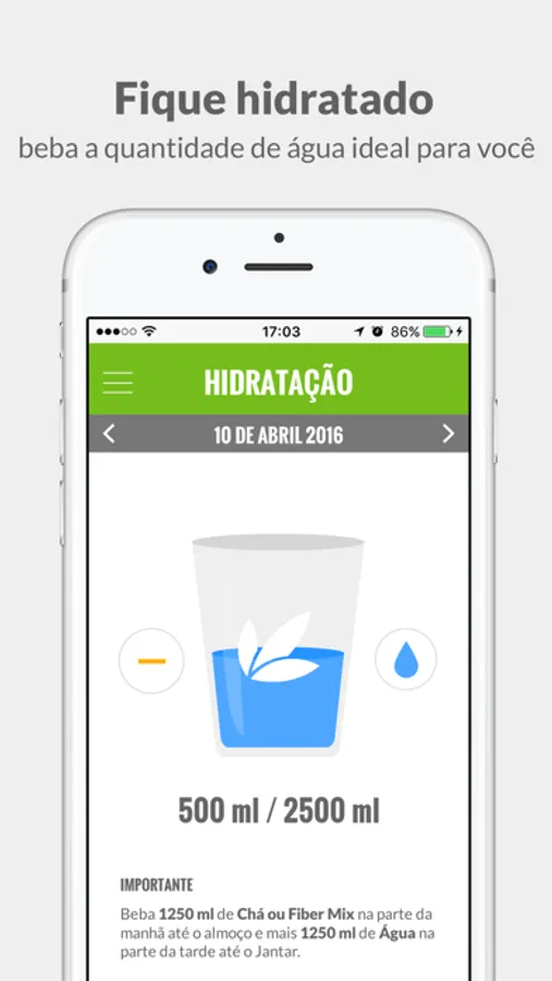 - ALERTAS: Receba alertas para você não esquecer de se hidratar e de se alimentar.