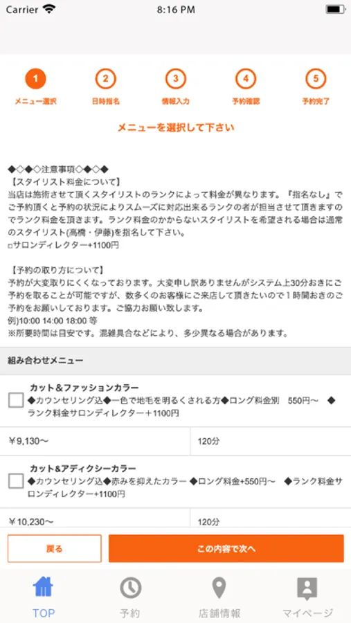 予約状況の確認やキャンセルがマイページ上から行えます。スタイリストの登録が出来るので前もって担当者を登録しておけばマイページからスムーズな指名予約が可能です。又、マイページにお気に入りのヘアカタログを登録出来るので来店時に画像を見せるだけでイメージを伝えることが出来るので安心です。