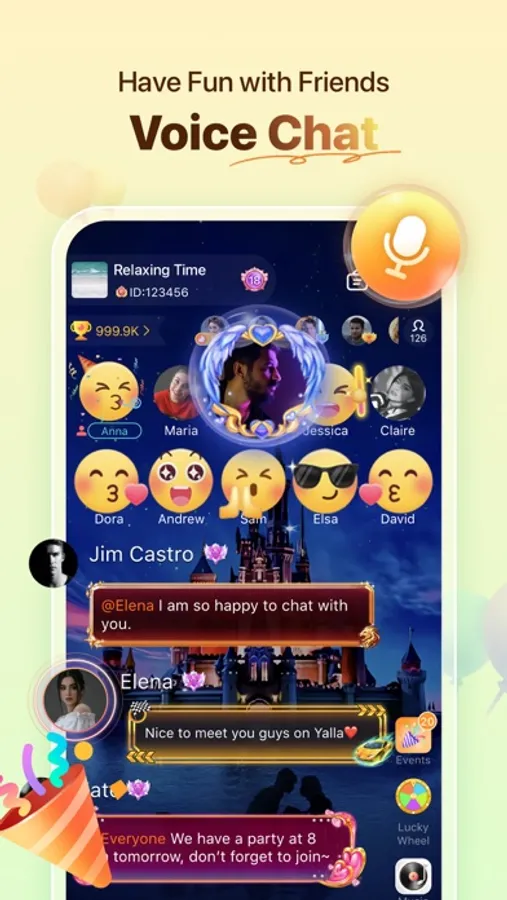 Group voice talk with friends no matter where they are, broadcast your favorite musics inside the room, sing karaokes together, and play a range of games directly in group chat. Let's get the party started.