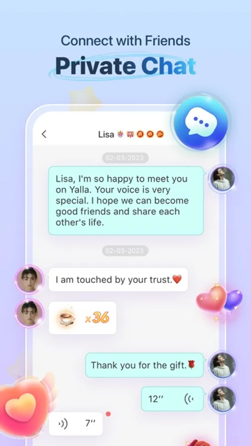 PRIVATE CONVERSATIONS — Start private one-on-one text and voice conversations with your friends from anywhere in the world.