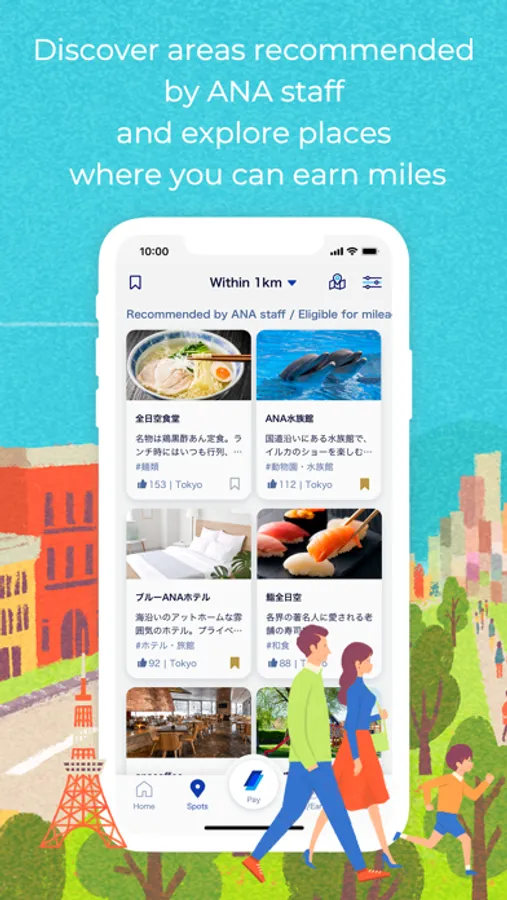 ANA Mileage Club App introduces spots where you can earn miles and use ANA Pay in your daily life and on your travels.
