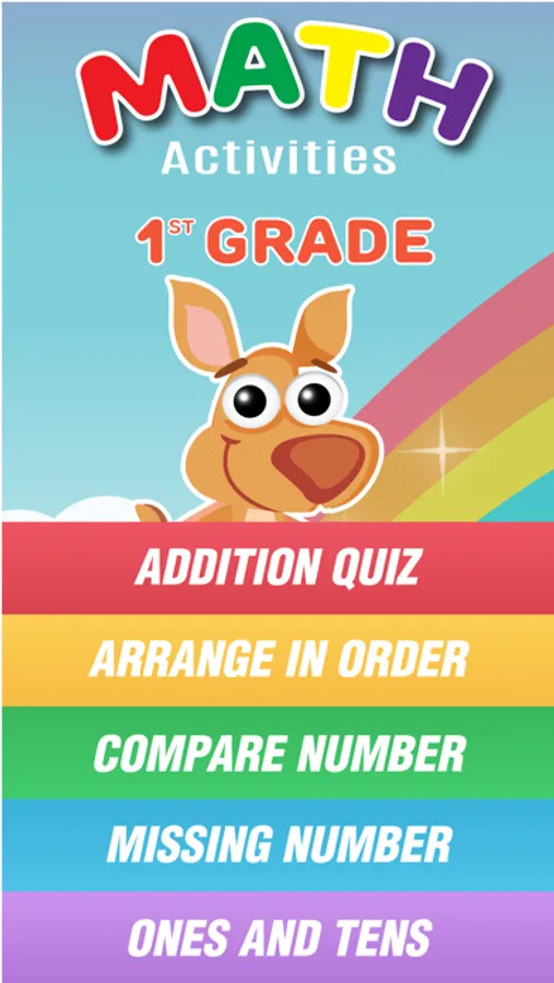 Kangaroo 1st grade addition math curriculum games for kids are designed using real 1st Grade curriculums and are modeled after Common Core State Standards.