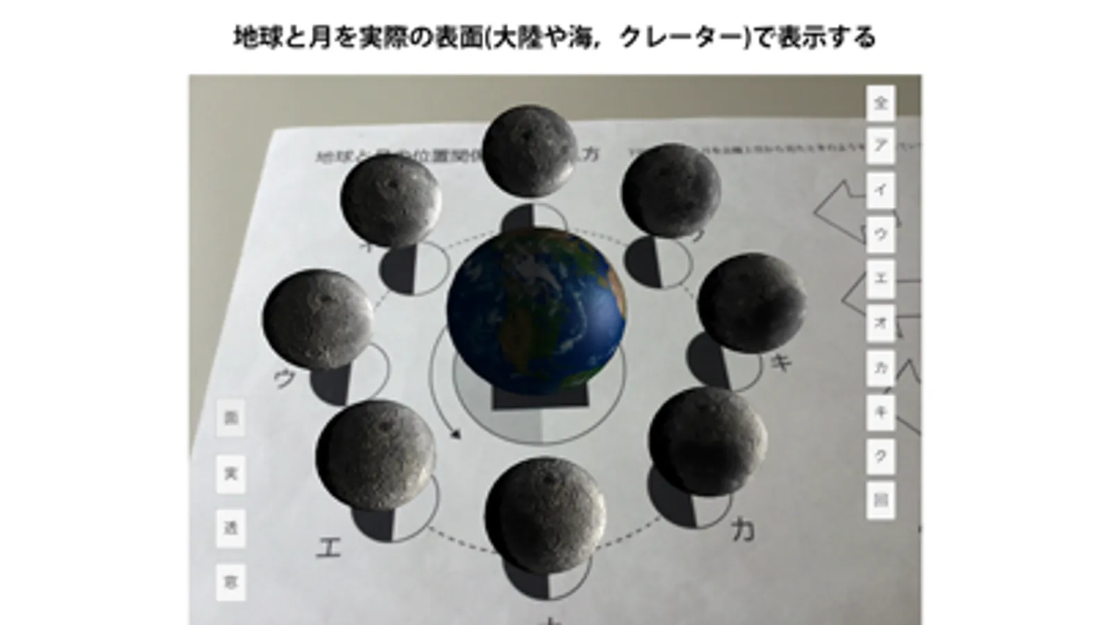 An app that displays the waxing and waning of the moon, which are learned in middle school science classes, in Augmented Reality* (AR).