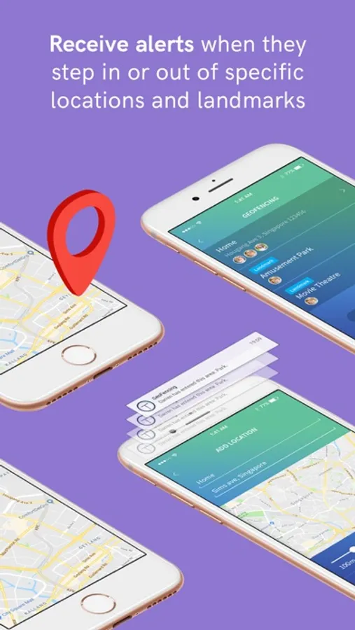 ■ Receive instant notifications when your child steps in/out of specified addresses or landmarks, e.g. amusement parks, movie theatres, shopping malls, etc