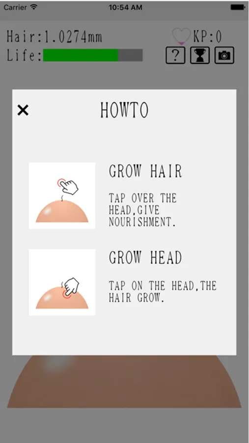 You can get KP when heart's gauge will be max,the hair will be dead.