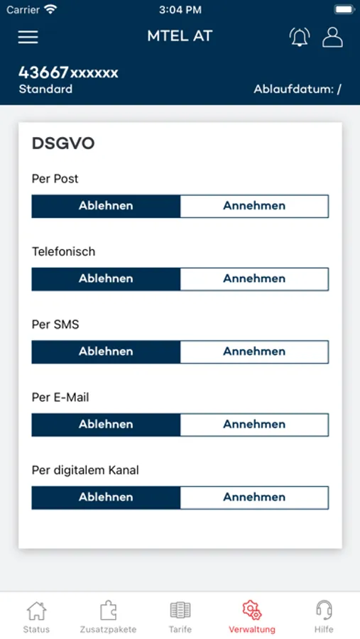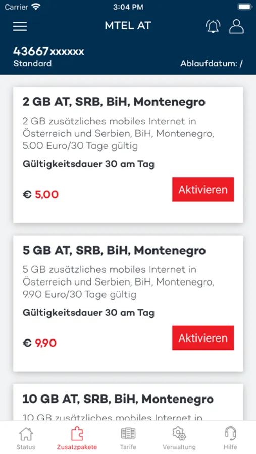 - Aktivierung der Tarifpakete