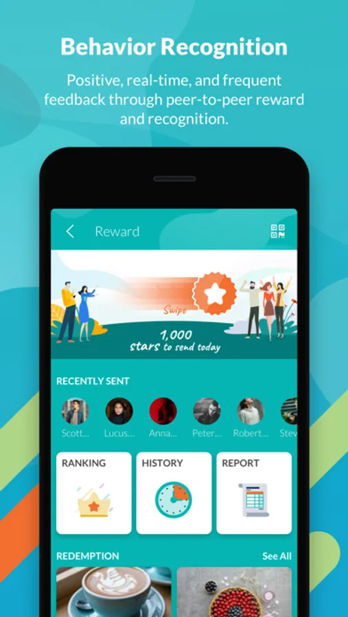 Recognition - A fun points reward module, where employees send compliments to each other, thereby creating positive working relationships and encouraging teamwork.