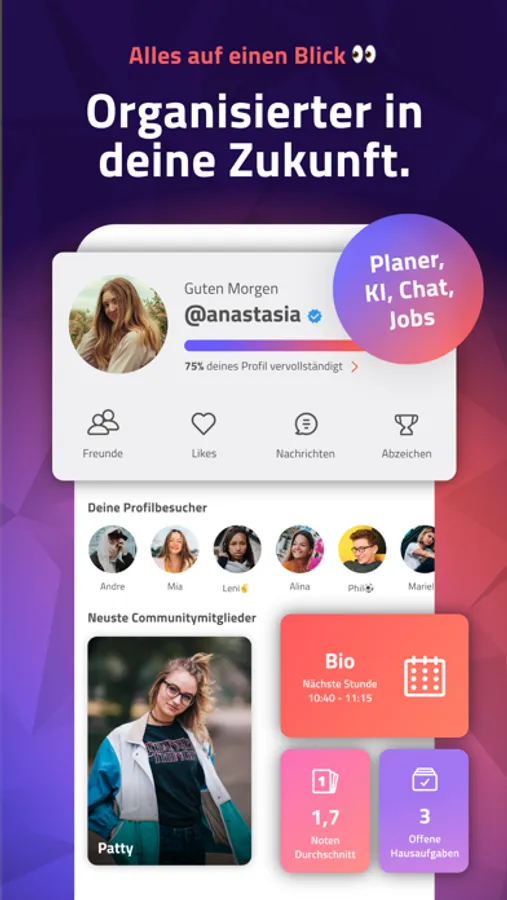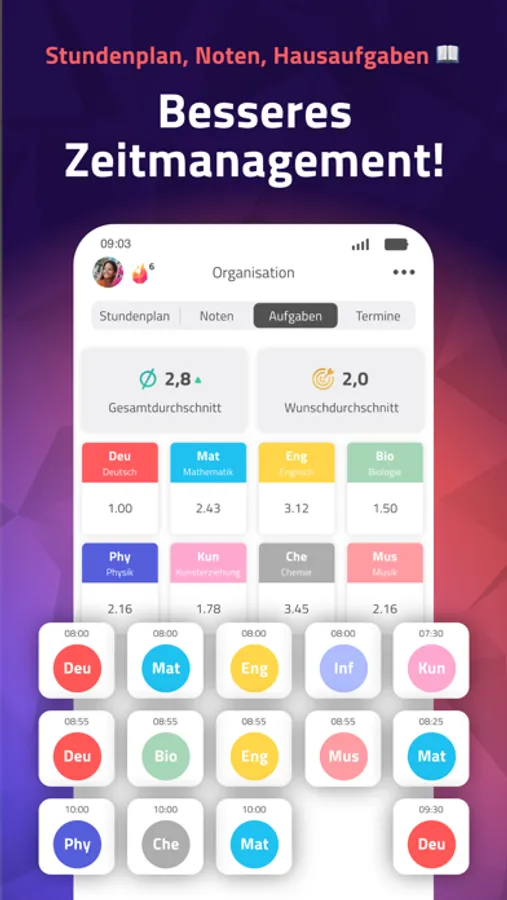 Checke jederzeit deinen Stundenplan und lass dich an Hausaufgaben,