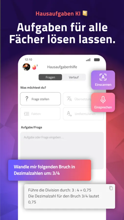 • Lass deine Fragen & Hausaufgaben von der KI lösen