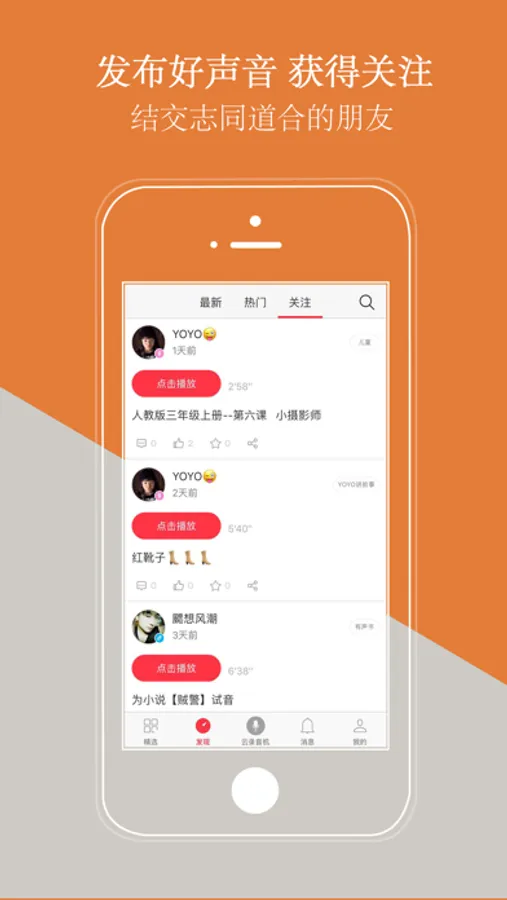 ● 强大的社交能力,发布音频让大家关注/评论/点赞,比比谁的粉丝多;