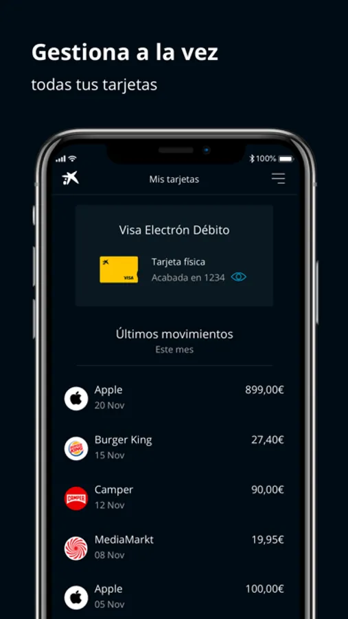 Podrás gestionar todas tus tarjetas CaixaBank de forma sencilla y rápida. Consulta en tiempo real todas las operaciones realizadas con las tarjetas que hayas añadido a tu monedero virtual.