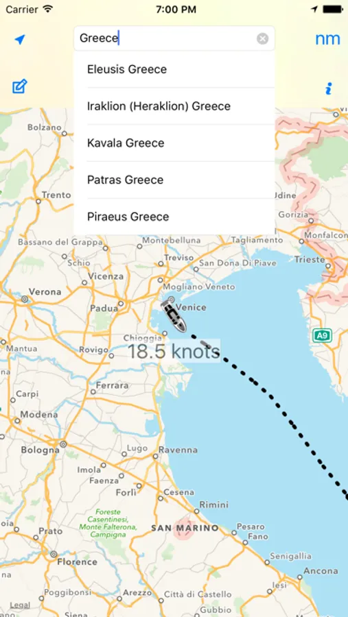 There's hundreds of ports available to search and you can also add your own destination by long pressing on the desired location.