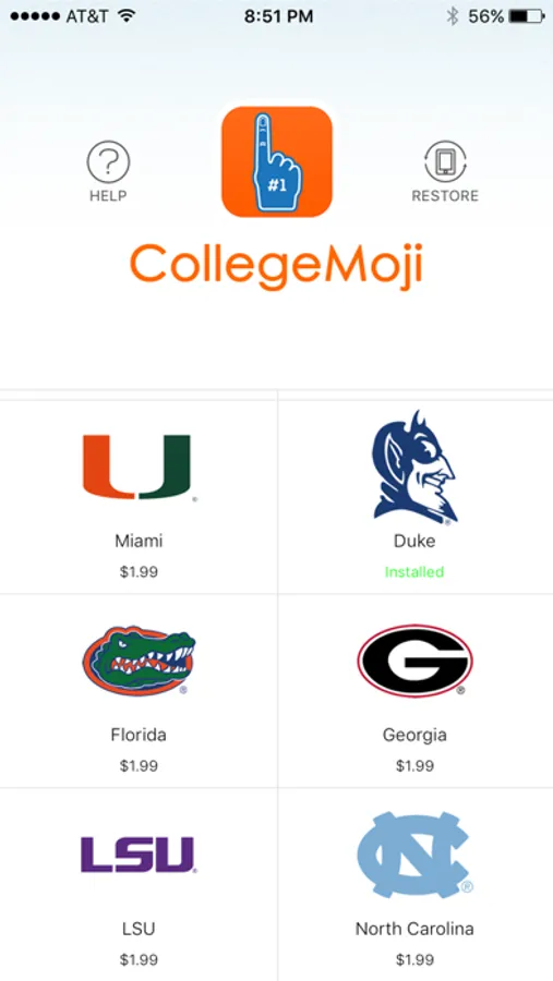With support for the top NCAA colleges and universities, the Collegemoji keyboard application from 2ThumbZ enables you to send collegiate branded emojis and stickers through your favorite messaging applications. Support includes messaging applications such as standard SMS, iMessage, Facebook Messenger and more.