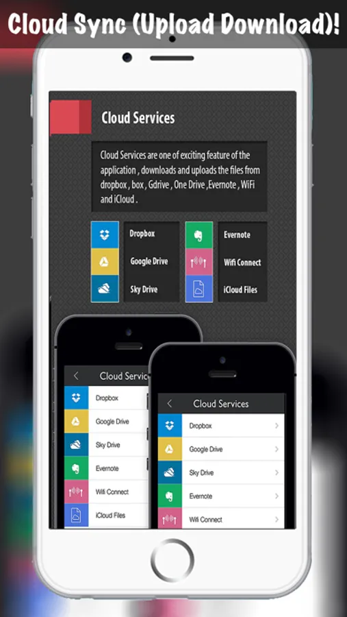 - Cloud service to download and upload files (Dropbox, Google Drive, One Drive, Evernote, etc)!