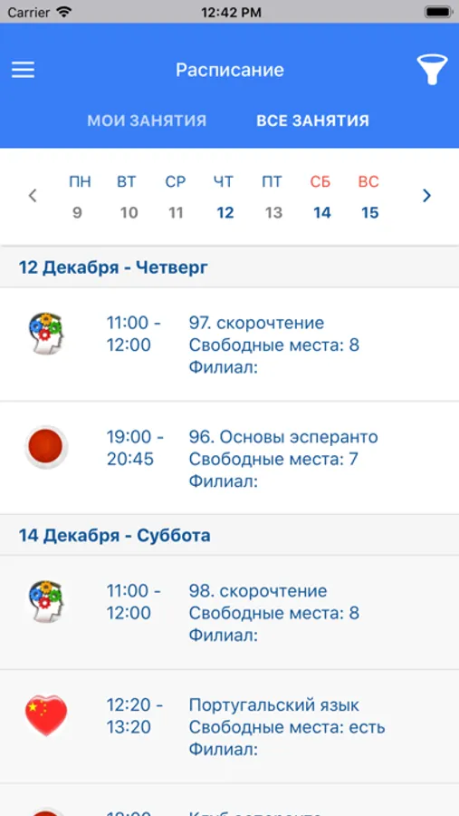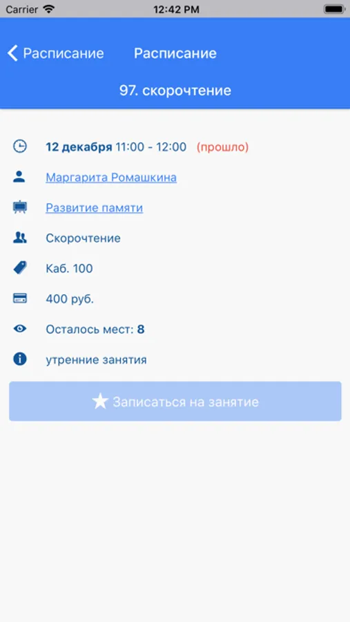 Вы получите доступ к расписанию занятий учебного центра и информацию о ваших абонементах.