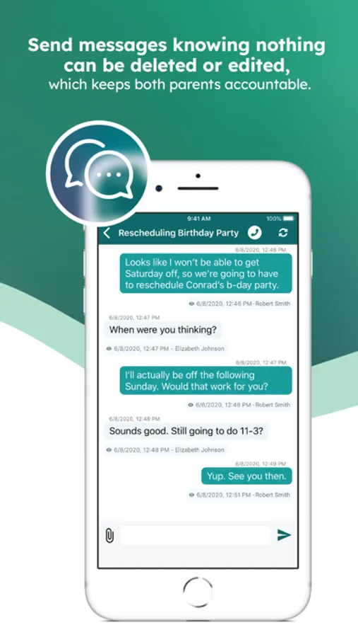 SECURE MESSAGING: co-parents can send timestamped, unalterable messages to each other, allowing them to see when each message was sent or viewed.