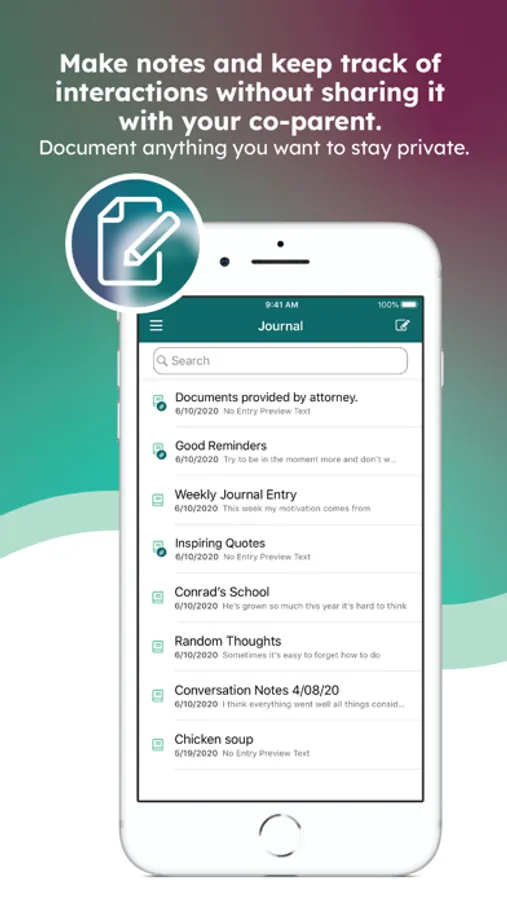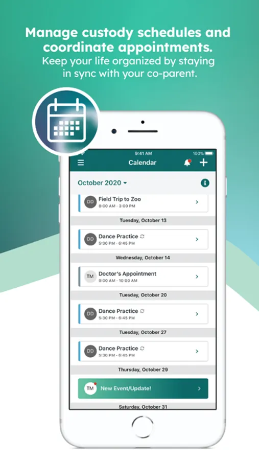 SHARED CALENDAR: co-parents can manage custody schedules and coordinate appointments, staying in sync and avoiding conflict.