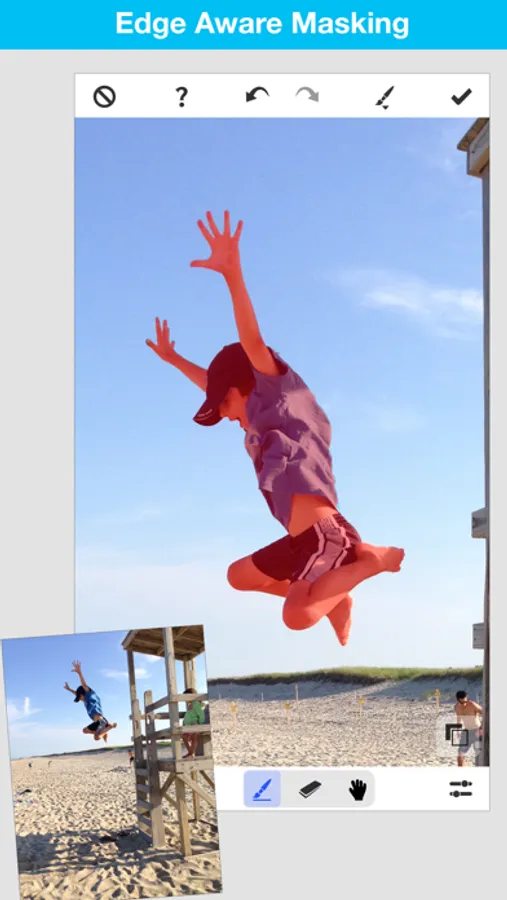 An edge aware brush lets you easily mask out objects. Reuse/remix your masks with invert, add, subtract, load and save to build the perfect mood.