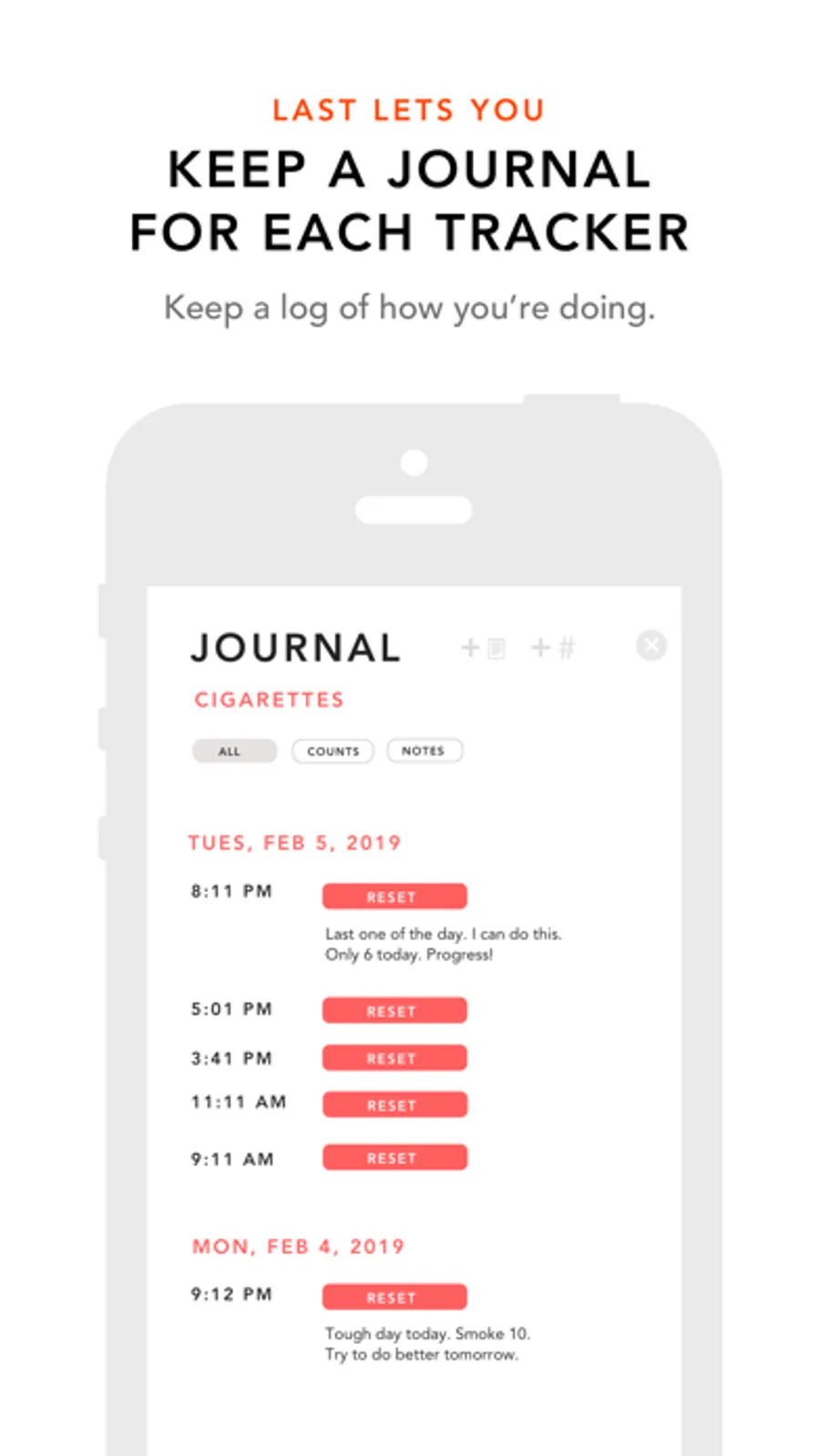When you feel a craving, just open LAST and see how far you've come and how much you've benefited. Record your thoughts in each tracker's digital journal.