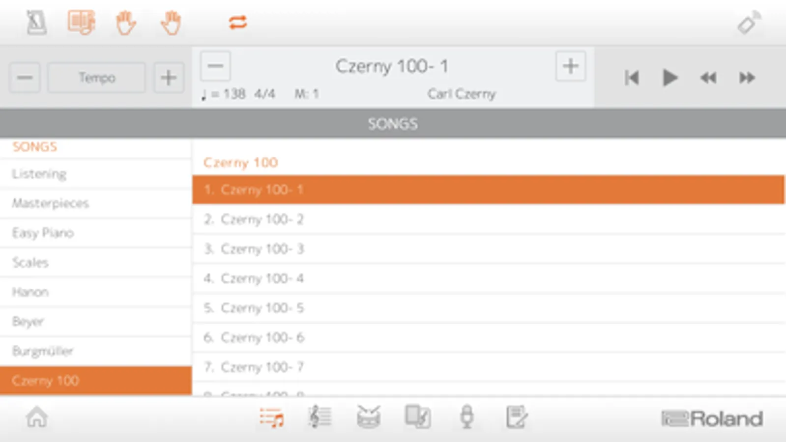 -Songs—browse and select music from your Roland digital piano’s onboard song library