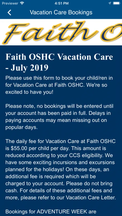 We're pleased to have worked with App City to develop our OSHC App. This app will give parents and friends the opportunity to be kept informed of the Program’s activities through notifications, events and photos.