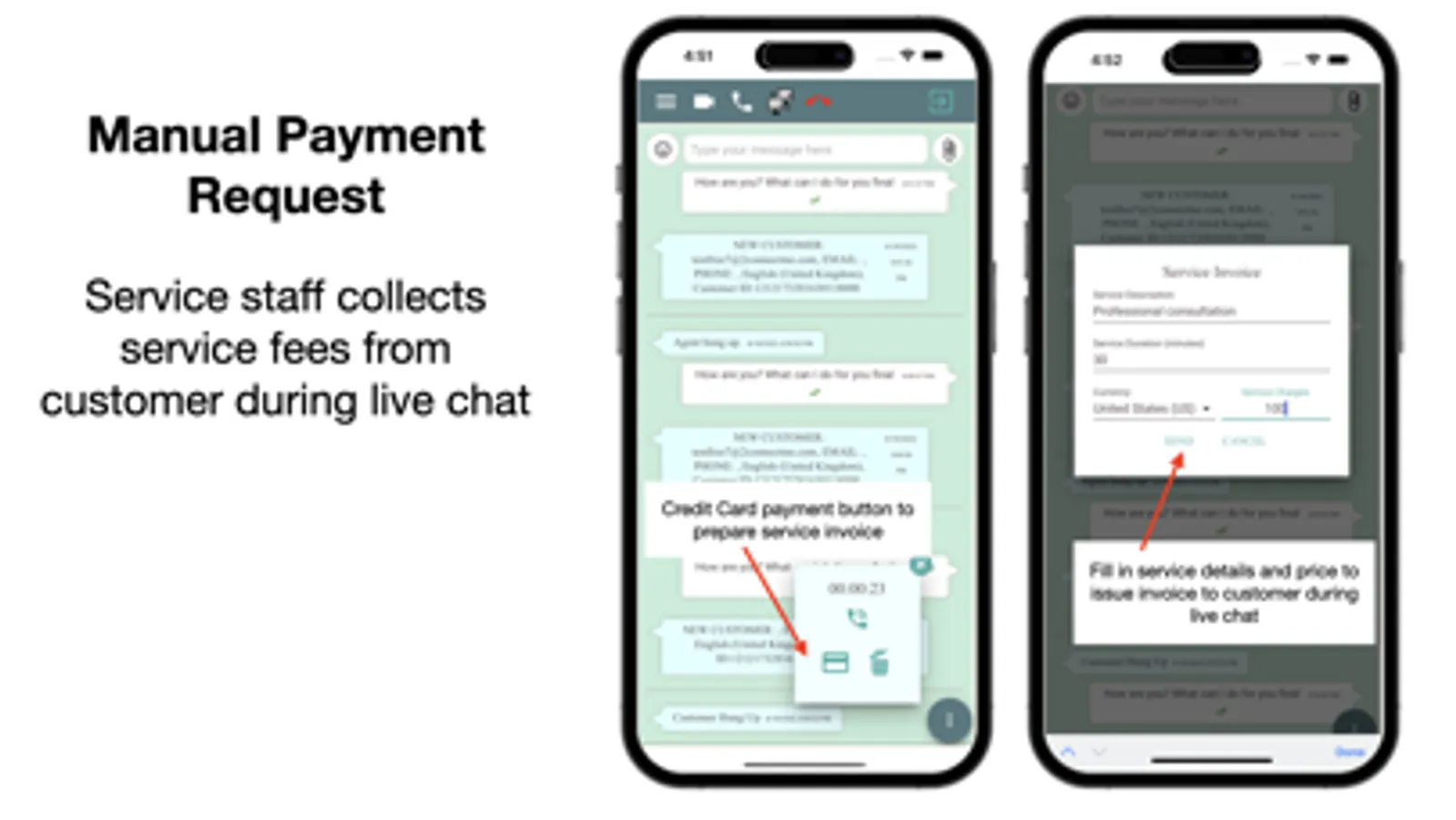 - Credit card pre-validation prior to connecting customer to your chat room.