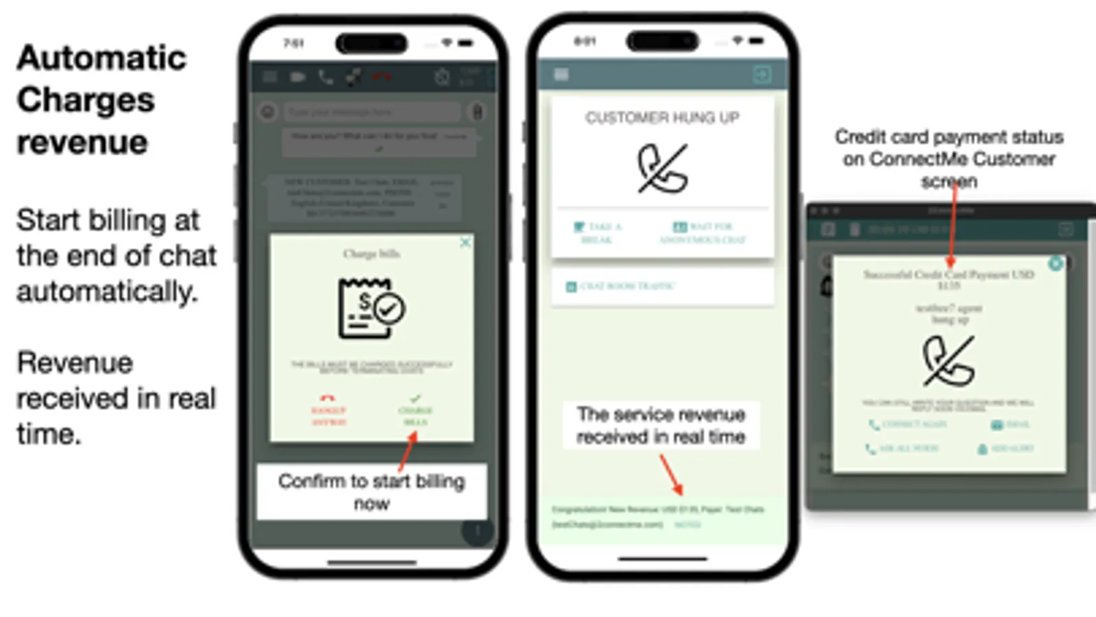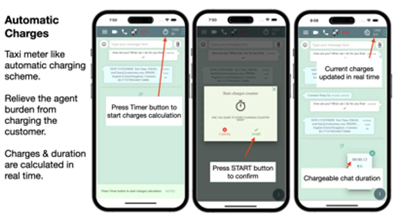 Automatic Charges method is specifically designed for agent to provide service provision with charges. It lets 2ConnectMe to determine the final charges according to the actual duration of the chats. It relieves the burden of agent from issuing invoices to clients.