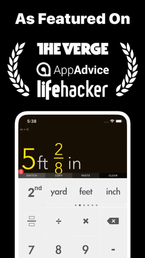 Award Winning Feet Inch Fraction Construction Calculator for iPhone and iPad. Designed with simplicity, usability and beauty in mind!