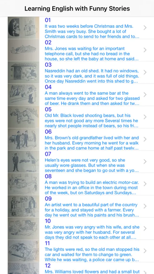 There are many funny stories, each about 150 words which can be used to learn. Learner can be used: