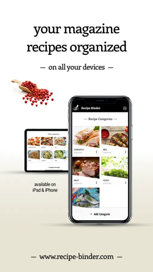 Create your digital Recipe Binder, just by taking photos of dishes and recipes you find in your favourite magazines. At home, at the hairdresser’s or wherever you read them.