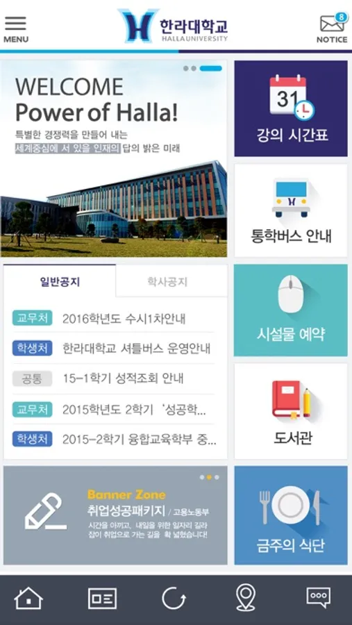 본 앱은 한라대학교에서 구성원을 대상으로 서비스하는 공식 앱 이며, 다음과 같은 서비스를 제공합니다.