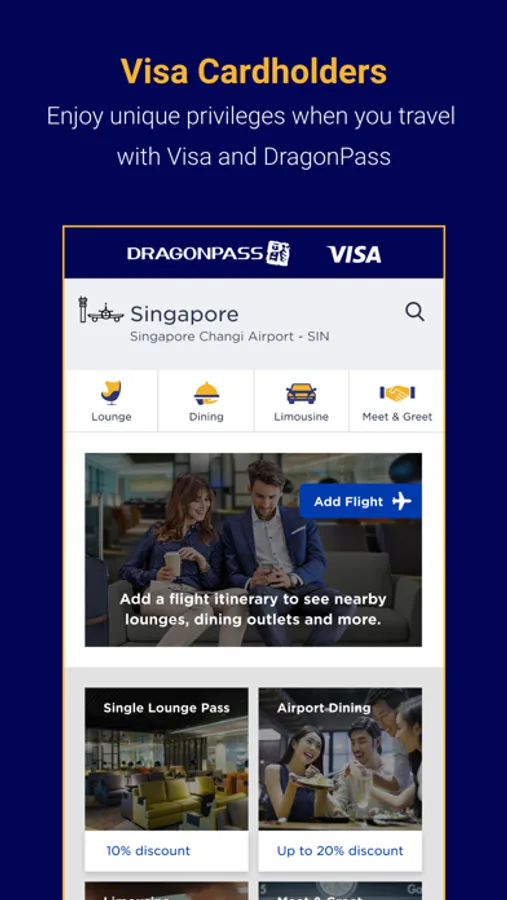 Enjoy privileges and discounts at lounges and restaurants in top airports globally. Travel with your Visa card and enhance your airport experience with Airport Companion.