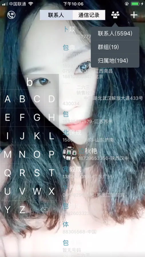 2、拨号魔方支持用户可以流畅地切换到全部联系人,分组联系人和归属地联系人
