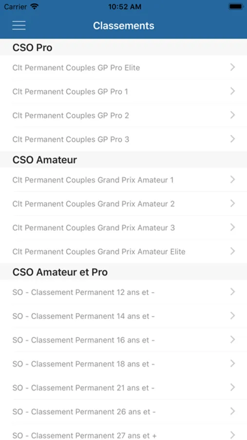 - les préférences afin de n'afficher que la(les) discipline(s) que vous souhaitez