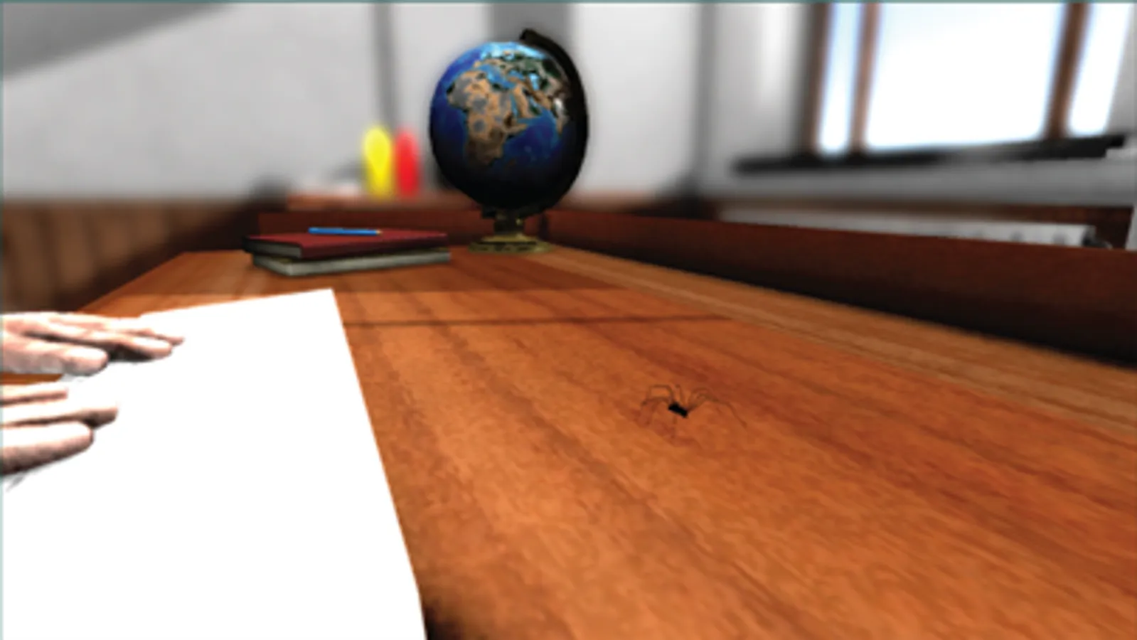 This app takes place in a virtual office and guides you through different scenes in which spiders occur in an increasing intensity. Just as in a therapeutic setting you start with a small spider in a jar at a distance. You have control over when the next scene starts.