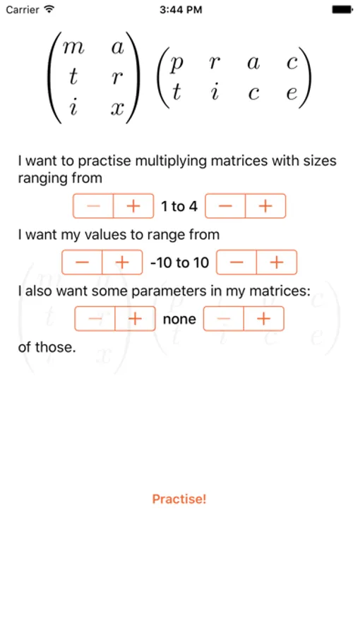 Practice multiplying matrices, the most important of all linear algebra operations, in this fun-filled conquest of mental arithmetic!