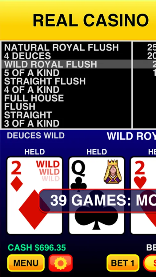 * Thirty-nine (39) different, authentic Video Poker casino games