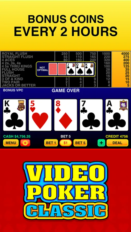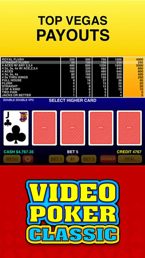 Video Poker Classic features your favorite video poker games with real card shuffling, casino paytables, real dealing, skills trainers, and the full Las Vegas experience.