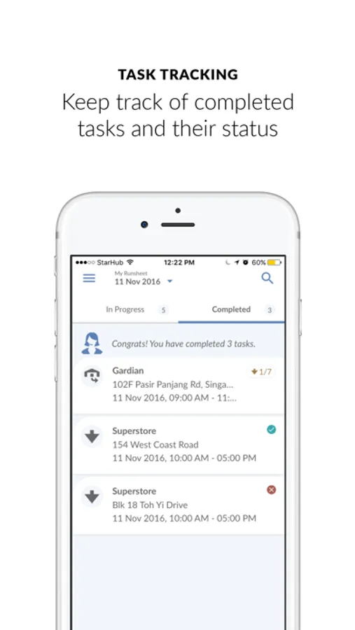 • Manage: Monitor the delivery status of jobs in the field from your office in real time 24/7. No more frantic phone calls with proper dispatch management.