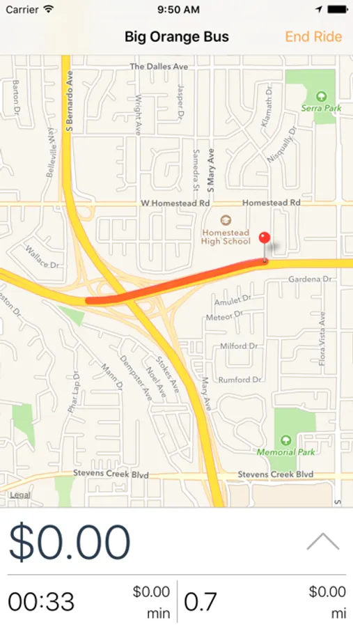 Record rides with the Big Orange Bus. The app tracks price using range and time.