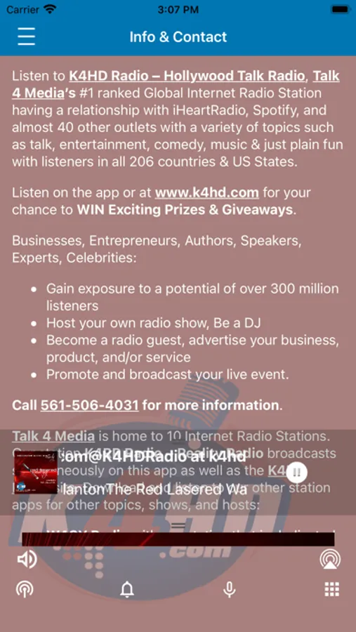 Download the K4HD Radio app, Talk 4 Media’s #1 ranked eco-friendly global Internet radio station located in California has a variety of topics such as talk, entertainment, comedy, music & just plain fun with listeners in all 206 countries & US States.