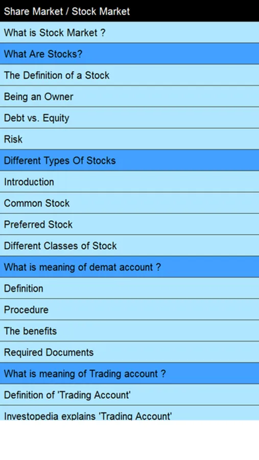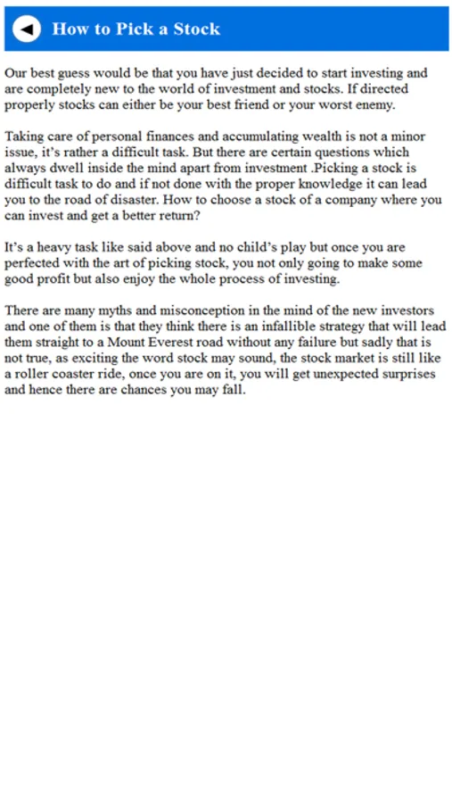 This app is a COMPLETE guide to the basics of making money in the stock market! If you are considering investing in the stock market, you MUST download this app! We have explained all the concepts and talked about all the "myths" that people have about the stock market!
